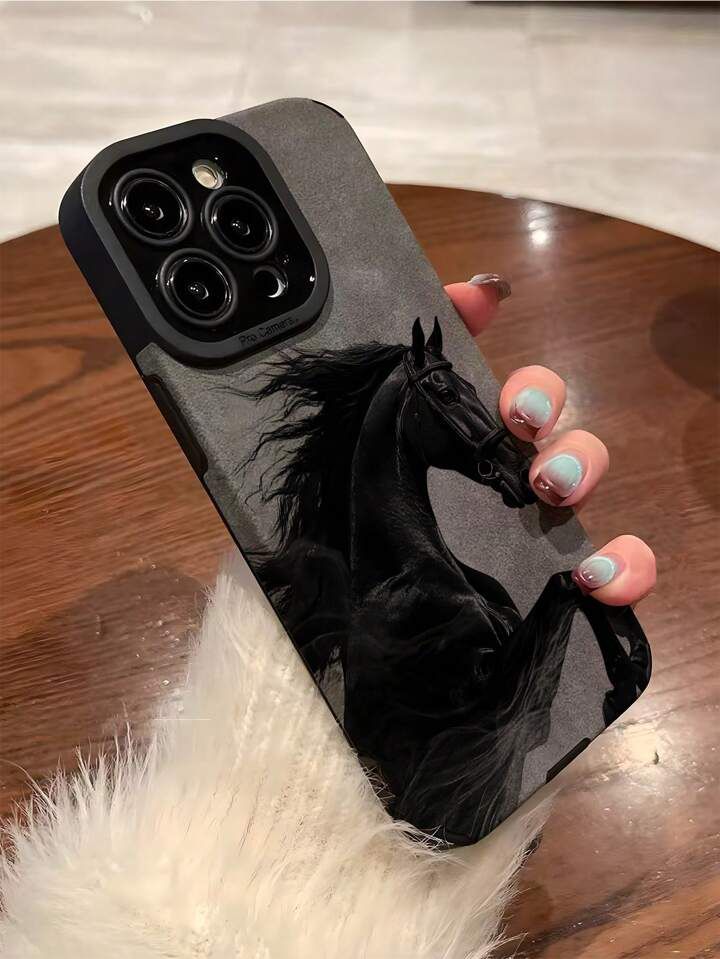 Black Horse Pattern Soft Matte Anti-Silicon Phone Case – Imported Premium Cover